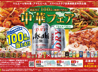 マルエー&味の素・アサヒビール共同企画 スマイルクラブカード会員様限定「中華フェア」企画のご案内