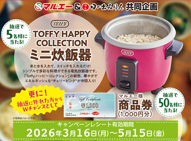 マルエー&日の出みりん共同企画「ミニ炊飯器プレゼント Wチャンス付き」のご案内