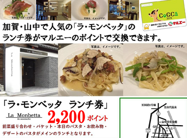 加賀市・山中で人気の「ラ・モンベッタ ランチ券」がマルエーポイントで交換できます