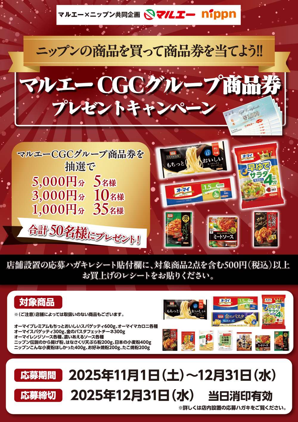 総計合計50名様にマルエーCGCグループ共通商品券が当たるキャンペーン