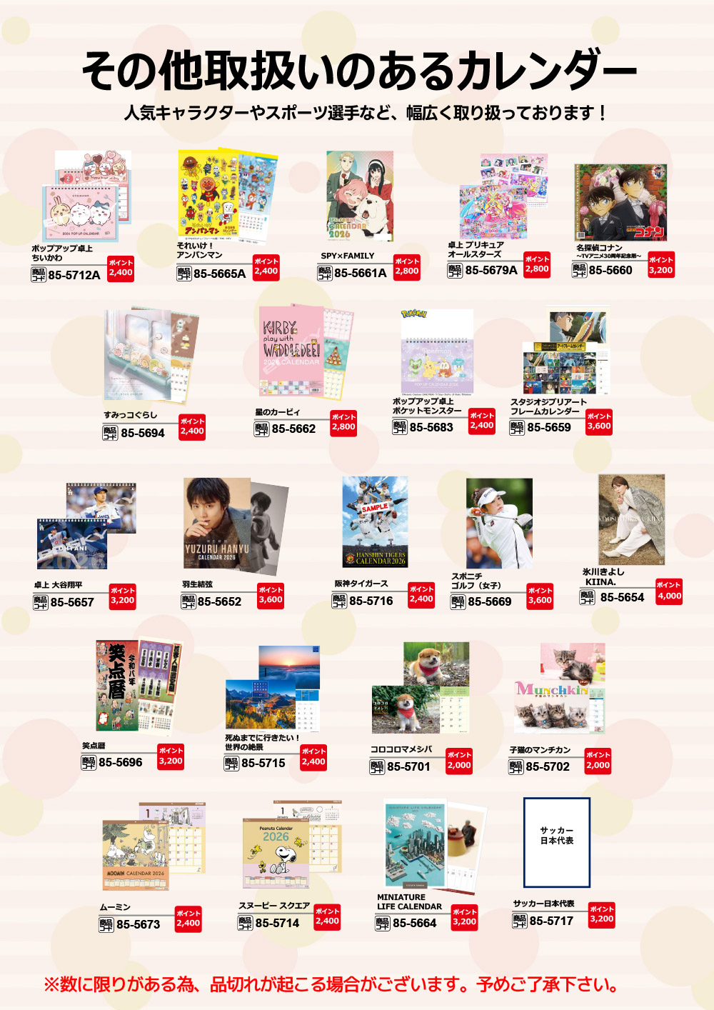 イベント・キャンペーン 2025.12.01 「2026年カレンダー」ポイント交換企画のご案内 お申込みは、店舗にあるビームステーションでお申し込みいただけます。 →こちらのページでも紹介しております イベント一覧へ
